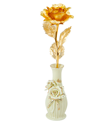 999纯金箔玫瑰+陶瓷花瓶----千足金箔玫瑰 最佳送女友送爱人礼物 结婚纪念礼物_金箔花_礼品_乐惠鲜花商城